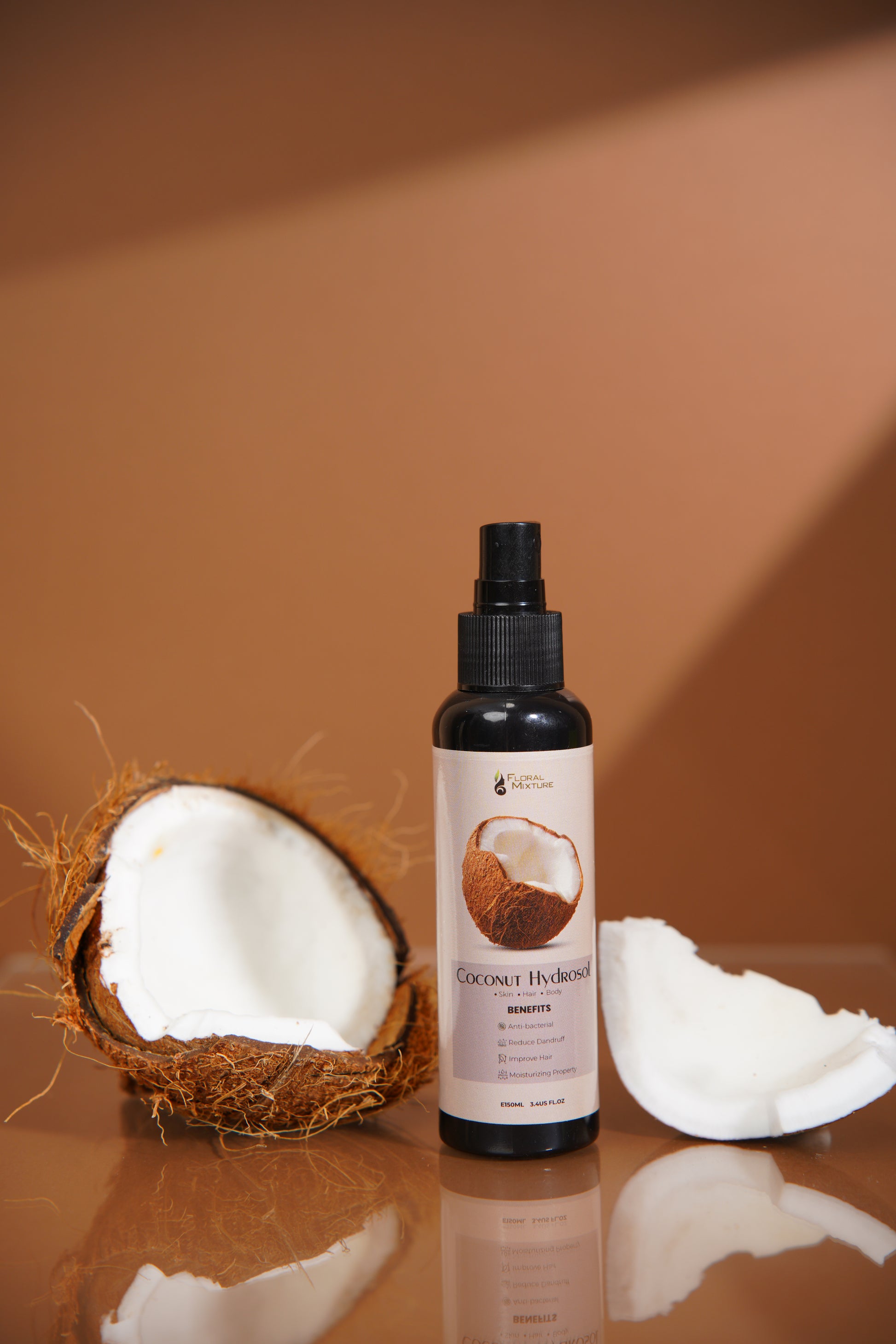 Coconut hydrosol nourishes, moisturizes, improves hair and skin vitality and is effective in alleviating many skin problems, including eczema, psoriasis, dermatitis and dandruff.Â